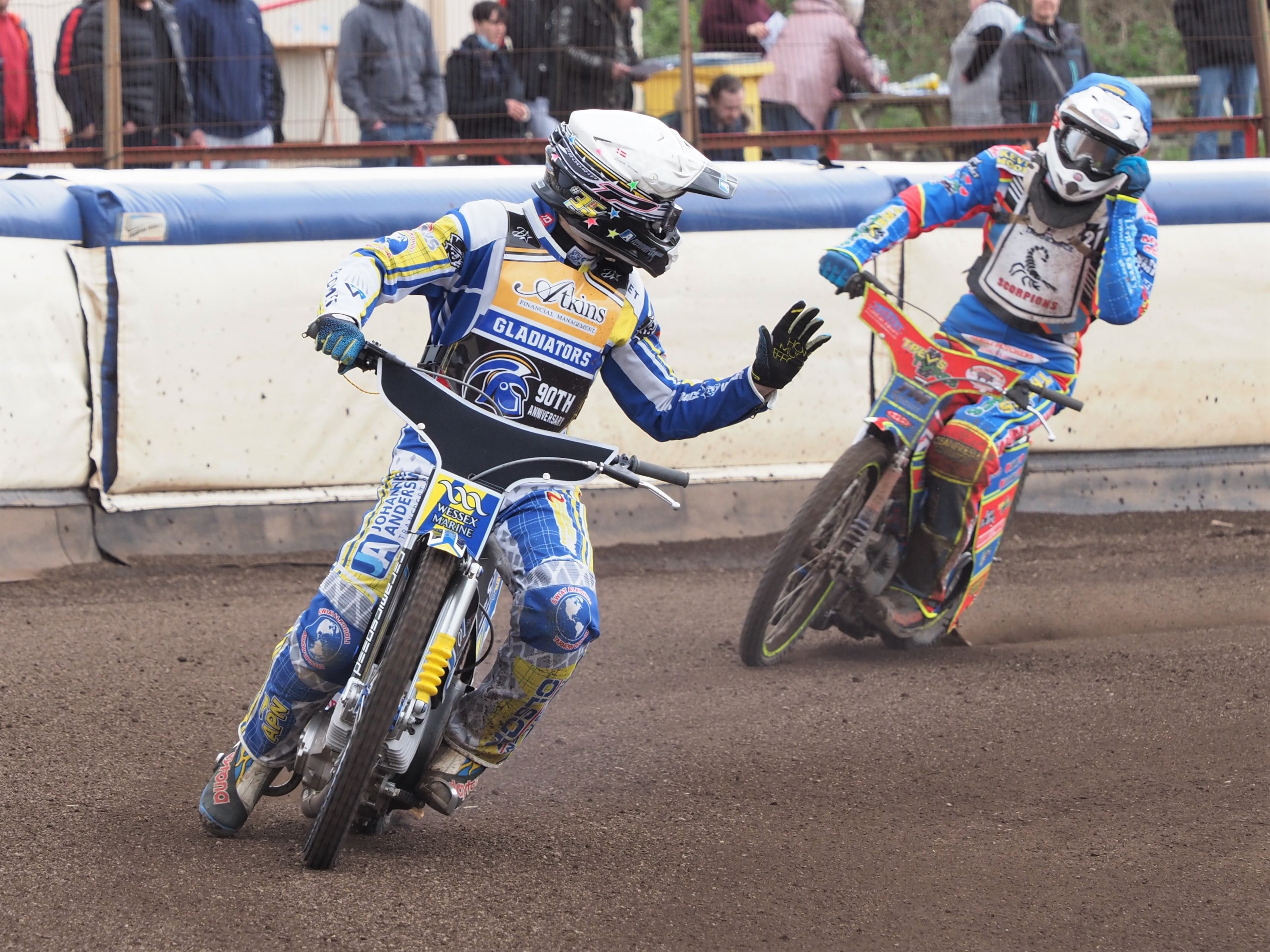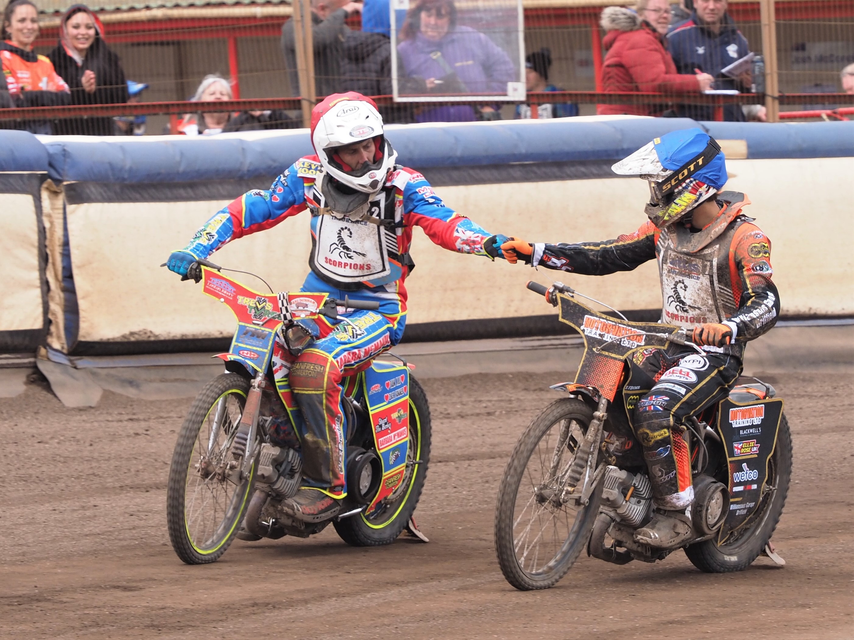 12: Palin takes the chequered flag to finish on 8+1 on his Scorpions’ debut.